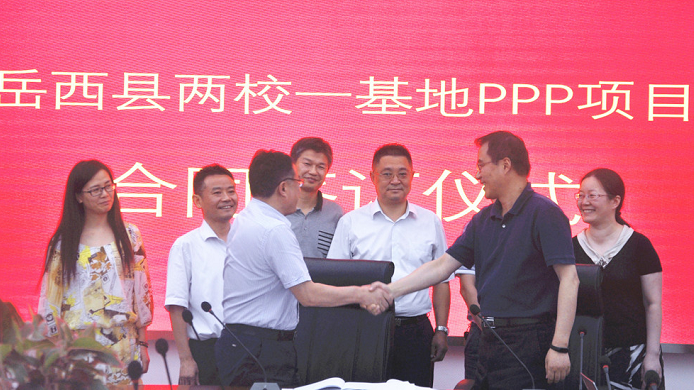 最后,吴卫国主任代表采购人,艾红卫董事长和张道祥董事长代表中标单位配合签署了《岳西县“两校一基地”PPP项目咨询服务条约》。