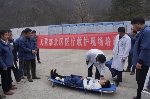 为有用应对景区突发事务,科学处置惩罚游客受伤情形,提高对突发事务的处置惩罚能力,2017年3月28日下昼3时20分,天堂寨百亿游戏生长有限公司与天堂寨镇医院团结开展了游客受伤救援、医疗救治演习和现场医疗培训。