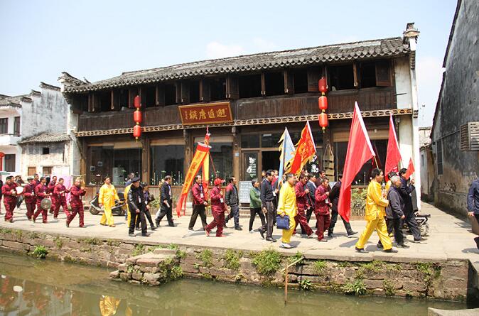 运动当天,来自各方的500多名汪氏宗亲共赴唐模,配合入村巡游祈福、入太子庙祭拜,巡游现场乐队喧天,巡游仪式热闹特殊。